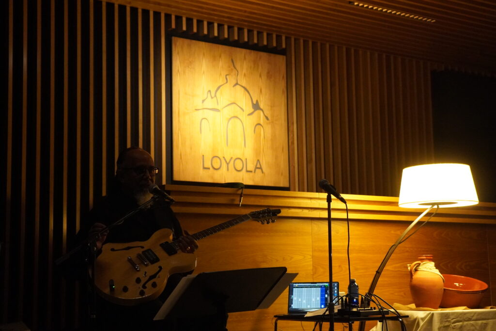 La música es un lenguaje que llega a territorios donde solo la palabra no alcanza. Es capaz de sumergirnos, de conectarnos, se infiltra por rendijas hasta abrir paso a la luz. La música abre puertas por donde luego entran emociones que se abren paso de otra manera, a veces incluso golpean el corazón. Eso sucedió en la velada musical en la que Enric, Erwyn y Dani nos sacudieron con su repertorio de godspell jazzeado trufado de testimonios como el de Seve Lázaro SJ, que nos acercó la realidad de la misión en Níjar que abre las puertas de hospitalidad en Casa Arrupe a migrantes “que lo pierden todo, porque se incendia o derriban la casa en la que viven”. Fe-Justicia sobre el terreno, ser puerta abierta donde todas se cierran.