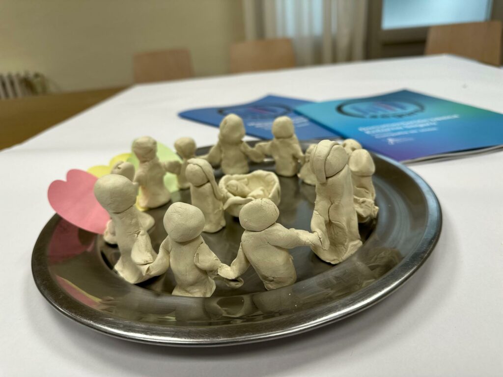 El barro como hilo conductor en el Encuentro en Loyola, un lugar cuya etimología más fiel nos dice que Loyola nace de la unión de lohi (barro o lodo) y ola (cabaña o ferrería). Es Loyola por tanto la «cabaña del barro». Es el lugar donde la materia más pobre, la que se pega a las sandalias, entra en el taller para ser transformada. Reconocernos «barro» es aceptar que estamos en proceso, que la misión del Decreto 4 no es un concepto teórico, sino una forma de dejarse amasar por la realidad. Y en barro se modelaron los ecos de los talleres dedicados al Proyecto Apostólico, piezas luego convertidas en ofrenda. Como nosotros y nosotras, ofrendas a Dios humildes y frágiles como el barro.